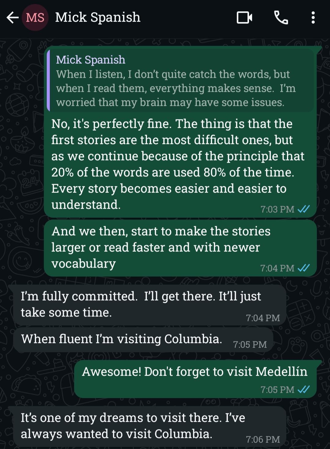 Weekly Interactive Stories that train you to think and respond instantly in Spanish